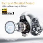 - [Hi-Res Audio & LDAC Certification]:10.8mm dual-magnet drivers with Hi-Res/LDAC certification deliver studio-grade 96kHz/24bit sound. Carbon fiber diaphragm and 48,000x/sec dynamic tuning balance deep bass, crisp highs, and 360° spatial audio.